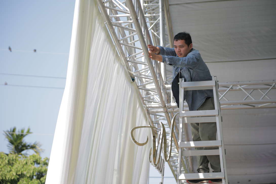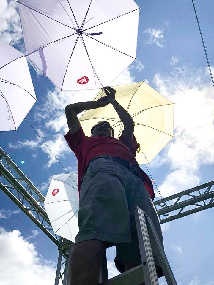 製作過程我們用了上百隻雨傘,一支一支慢慢綁上去