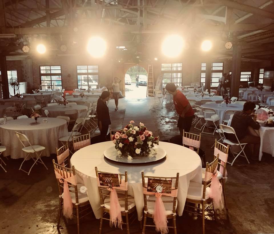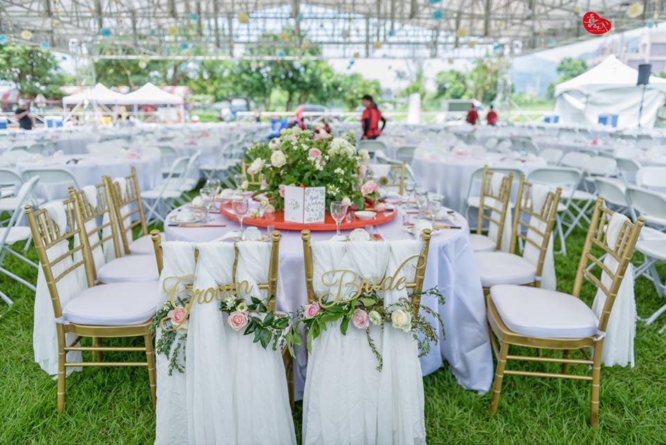 對了桌椅、桌巾,整場婚禮佈置也通通是喜事一手完成的喔